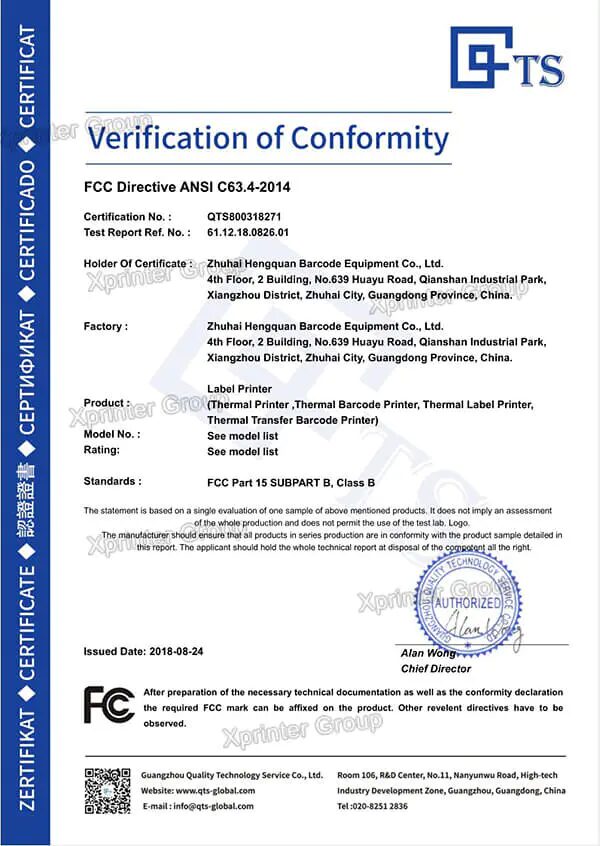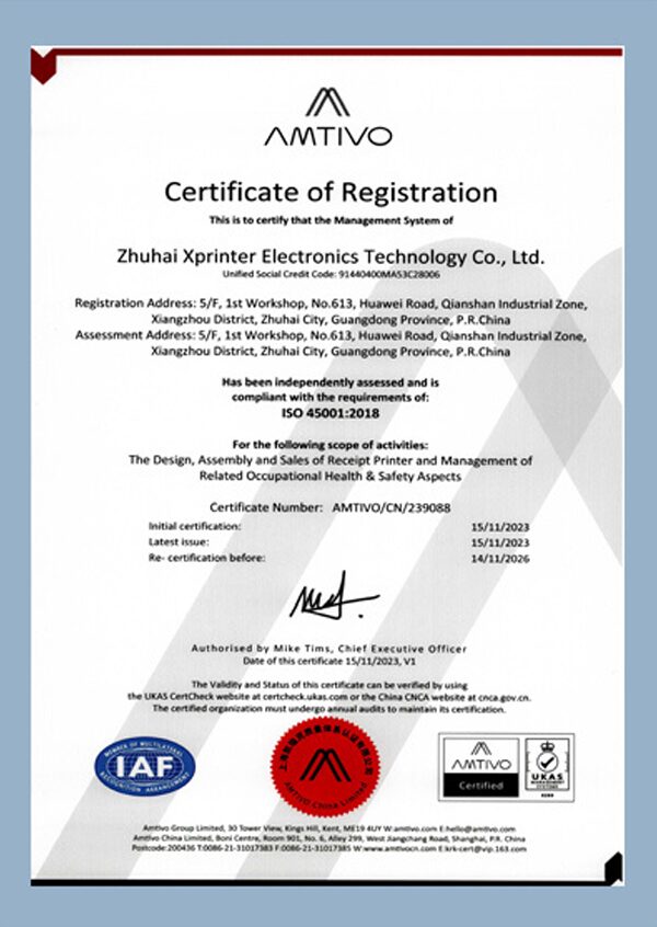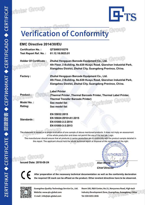 Xprinter Group là công ty có chứng nhận QMS quốc tế ISO9001: 2015
